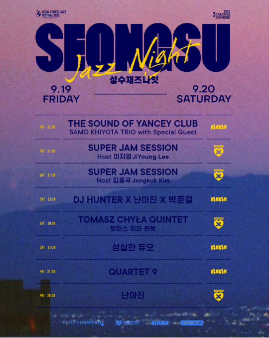 - 🌃 Seongsu Jazz Night (별도 예매): Super Jam Session(Host 이지영), THE SOUND OF YANCEY CLUB, 난아진, Quartet 9