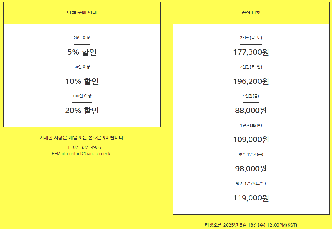 - 금: 1일권 88,000 / 펫존 98,000 / 2일권(금·토) 177,300 / 성동구민 1일 80,000