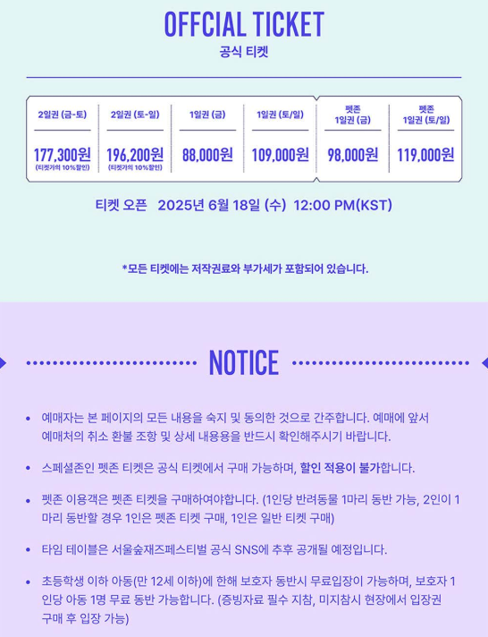 서울숲재즈페스티벌 2025 - 5) 가격표 요약 (정가 기준)